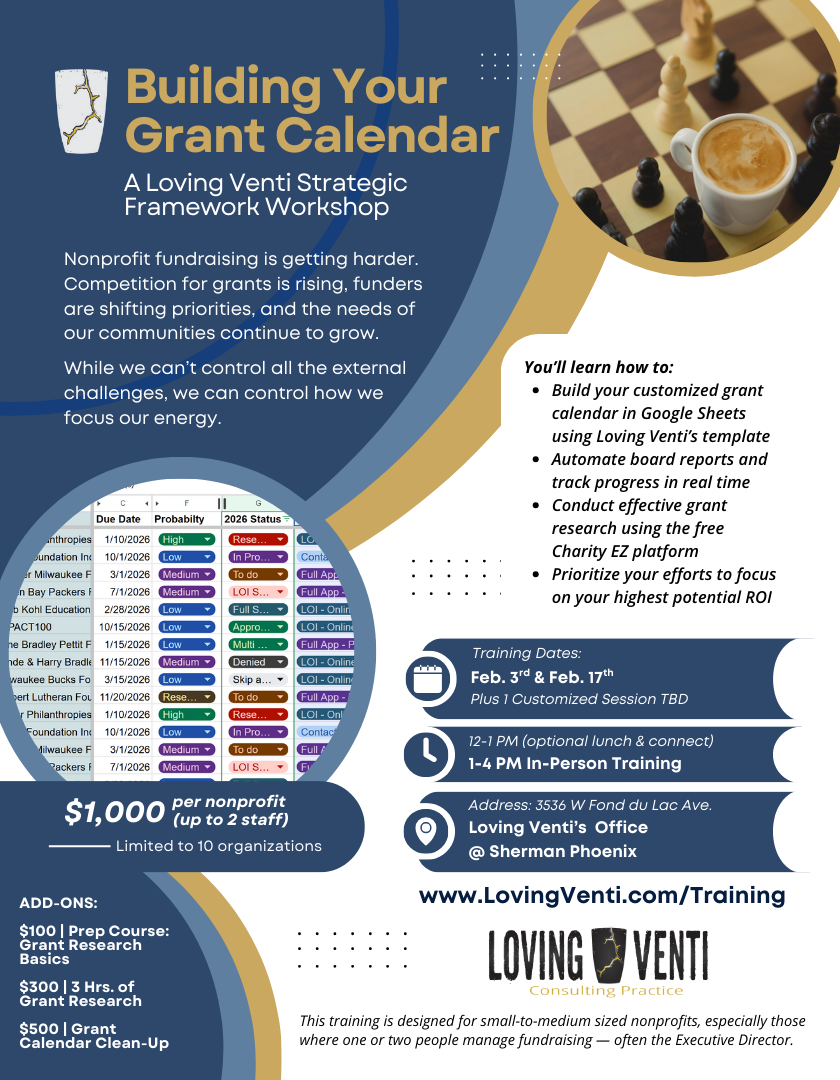 Beginning February 3rd: Loving Venti is offering “Building Your Grant Calendar”: